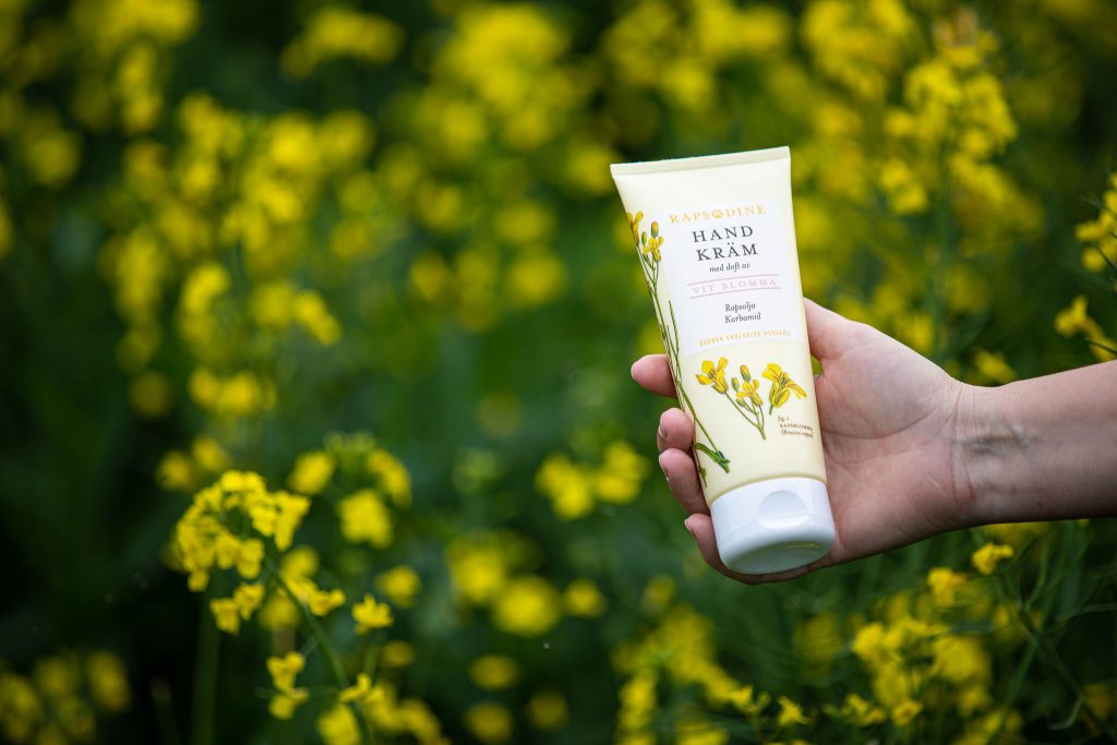 3. Rapsodine Handkräm – vår ekologiska handkräm med ljuvlig doft av vit blomma skyddar, mjukgör och förebygger problem med torr hud. Handkrämen innehåller både svensk ekologisk rapsolja och karbamid som återfuktar huden på djupet och ger långvarig verkan.